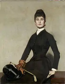 On the death of her husband in 1899, just before the start of the Boer War, Kingston raised subscriptions to open a nursing hut for British troops in South Africa; some accounts of her life claim that she went to South Africa herself and worked in her hospital as a nurse, a claim not substantiated in her autobiography, in which she wrote that she was persuaded not to go.[2][5] She remained active in the theatre over the next decade; in 1905 at the Royal Court Theatre she played Helen in the tragedy The Trojan Women by Euripides, and Aurora Bompas in Bernard Shaw's How He Lied to Her Husband opposite Harley Granville-Barker.[6] Also in 1905 her portrait in charcoal was executed by John Singer Sargent.