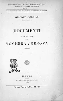 - Documenti sulle relazioni fra Voghera e Genova (in Italian). Pinerolo: Società storica subalpina. 1908.