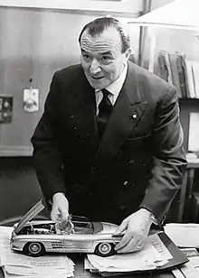 Blessed with an enthusiastic approach to life, Mazzocchi had a passion for cars. He saw them as vital instruments of personal and social emancipation. For him, cars epitomised individual freedom and independence.[1][5] In the editorial of the first edition of Quattroruote, published as Italy's post-war boom in car ownership was accelerating, he wrote, "We want the car to become the means through which everyone will live better".[8][lower-alpha 3] He also expressed his enthusiasm as a collector of cars, though sources are vague over how many he had at any one time. In the words of one source, the cars "came and went. He tried them, bought them, gave them away ...".[8] He was particularly proud of his first Citroën DS.[8] He loved his sports cars, especially the Alfa Romeos, and was also a Ferrari enthusiast.[8]