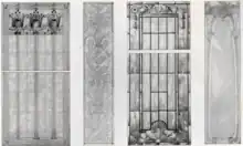 The studio created and designed colorful glass windows for businesses, homes, churches,[4][5][6] fireplaces,[7] and mantels. Frank Lloyd Wright[8] worked with Giannini and Hilgart to produce his prairie-style windows. George Maher was another client of Giannini and Hilgart.[2] The studio also manufactured pottery.[9] The original firm was in the Chicago Loop area.[10]