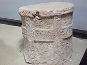 Still in the time-frame of the Prenuragic age, but in this case during the Eneolithic period, there is a remarkable production of "Laconi-type" statue-menhirs or statue-stelae, assigned to the Abealzu-Filigosa culture and characterized by a uniform tripartite scheme encompassing, from top to bottom: a stylized T-shaped human face; the depiction of the enigmatic capovolto (the capsized) in the kind of trident capovolto; and a double-headed dagger in relief.[11][20]