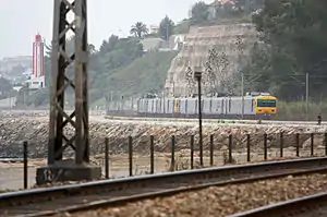 ![]() View of the Linha de Cascais with the Farol da Gibalta at left, 2009. | |