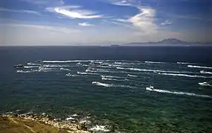 The proposal for a local flotilla to celebrate the Diamond Jubilee originated at the Ocean Village Marina in the British Overseas Territory of Gibraltar.[1][4] The idea was met with a positive response from boat owners at the marina just north of Gibraltar Harbour, and the Government of Gibraltar was supportive as well. The flotilla was one of numerous events scheduled in honour of the Queen.[1][5][6] The plan was for a mid-morning briefing of skippers, followed by a military re-enactment. Also planned were addresses by the Minister for Culture and the Governor of Gibraltar, and a bagpipe recital, with the minister then joining the parade. It was anticipated that the flotilla would be led by HMS Scimitar of the Royal Navy.[7] The flotilla was to leave the marina at noon on 4 June 2012, parading from the west side of the runway of Gibraltar International Airport, past Europa Point, to the east side of the runway.[1][8][9] At that point, the vessels would turn around for the return trip.[1] Ros Astengo, the event organiser at Ocean Village, the resort which incorporates two marinas, Ocean Village Marina and Marina Bay, indicated that, in addition to the flotilla "with all manner of vessels dressed in streamers and Union Jacks," the resort was "encouraging as much onshore support as possible with horn-tooting and flag-waving most welcome."[1][10] She further noted that the resort's restaurants and bars would be featuring special meals and drinks and that there would be "a live band and DJ chill-out music in the evening." At sunset, the aerobeacon on top of the Rock of Gibraltar would be lit. Those who didn't own a vessel were requested to consider the possibility of chartering a yacht. The host of the event aspired to have the participation of one hundred vessels in the flotilla.[1]