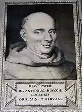 Giovanni Antonio Bianchi was born at Lucca on 2 October 1686. At the age of seventeen he entered the Franciscan Order. He was once elected to the office of Provincial of the Roman Province, and for a number of years was professor of philosophy and theology. During these years of professorship, he no doubt acquired much of the extensive acquaintance with ecclesiastical subjects displayed in the productions of his later life. He possessed a memory of such range and tenacity that he was considered a prodigy by the many students and scholars who came to visit him in his convent cell. Bianchi was held in high esteem by the Roman Curia and by Clement XII, whose successor, Benedict XIV, appointed him consultor of the Holy Office. He died at Rome on 18 January 1768, aged eighty-one.[1]