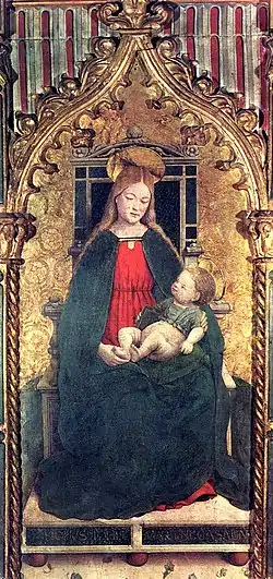 Virgin and Child Enthroned, tempera on panel, ca. 1480, detail of a polyptych, Galleria Sabauda, Turin