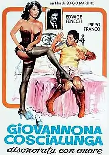 Giovannona Coscialunga disonorata con onore (literally "Joanna Longthigh, honorably dishonored", internationally released as Giovannona Long-Thigh) is a 1973 commedia sexy all'italiana directed by Sergio Martino. The film reteams the two main actors of the 1972 film Quel gran pezzo dell'Ubalda tutta nuda e tutta calda and, as with the previous film, it was very successful commercially.[1] The original title reprises Lina Wertmüller's Mimì metallurgico ferito nell'onore.[2]