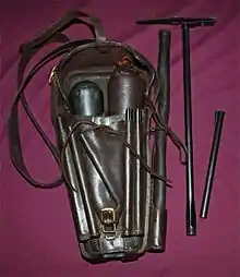 Contemporary regulations of 1788 required that each rifleman be equipped with the rifle, three compressed air reservoirs (two spare and one attached to the rifle), cleaning stick, hand pump, lead ladle and 100 lead balls, 1 in the chamber, 19 in the magazine built into the rifle and the remaining 80 in four tin tubes. Equipment not carried attached to the rifle was held in a special leather knapsack. It was also necessary to keep the leather gaskets of the reservoir moist to maintain a good seal and prevent leakage.[11]