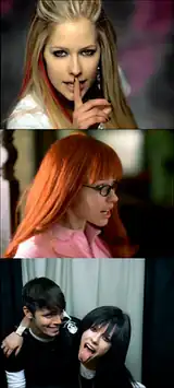 Lavigne as her regular self (first image) with two of her alter-egos in the video for "Girlfriend".