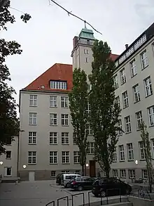 A group of students participated 2013 to 2014 at the project „DENK MAL – Erinnerung im öffentlichen Raum“ at the school.[1] The students erected a plaque at the entrance of the school in remembrance of the murdered and prosecuted Jewish students in Nazi Germany.[2] A commemoration ceremony took place on 10 November 2014. The project received letters from German Chancellor Angela Merkel and the German President Joachim Gauck congratulating them. The Project was supported by the International Tracing Service.