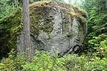 Glacial erratic boulders in Island County are a remnant of the Pleistocene glaciation that created Puget Sound and transformed the surfaces of what are now Island County's main landmasses: Whidbey Island and Camano Island. South of Deception Pass, the two islands' surfaces and beaches are completely composed of glacial till.[1][2]:5 Abundant glacial erratic boulders lie on the islands, their beaches, and under the near-shore waters.[3][4]