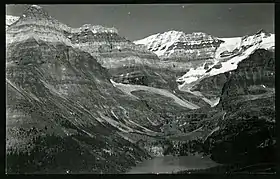 ![]() Glacier Peak (centered) with Mount Lefroy in upper left and Ringrose Peak in upper right as seen from Lake Oesa | |