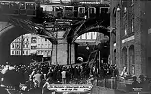 The station's name literally means "railway triangle," or wye in English, and marks the spot of an earlier major train hub that opened in 1902, where the three branches of the first Stammstrecke U-Bahn line from Zoologischer Garten, Potsdamer Platz and Warschauer Brücke met. A major accident at the triangle happened on 26 September 1908, when two trains collided. One car derailed and fell from the viaduct, killing 18 people and injuring 21. Upon another dangerous incident, the single-level triangle from 1912 was rebuilt and replaced by the current two-level station. Since then there is no direct rail connection between the two lines at Gleisdreieck, but only an intersection.
