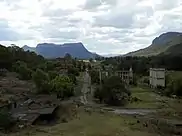 The closure of the works loomed as a personal financial catastrophe for those who had built or bought houses on land in the township.[43][40][44] The Commonwealth Government agreed to compensation that softened the blow, and the unions agreed to allow the industrial plant to be disassembled.[45][46] Beginning in early 1953, much of the movable equipment and other salvageable items were put on sale at auction.[47] The population soon drifted away—dwindling from around 2,000, at its peak, to only 195 by late 1954[48]—and some buildings in the town were relocated, leaving Glen Davis close to a ghost town. The immovable parts of the plant became ruins.[49]
