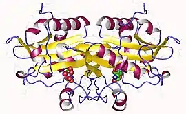- ↑ PDB: 2O28; Plotnikov AN, Bochkarev A, Edwards AM, Arrowsmith CH, Sundstrom M, Weigelt J, et al. "Crystal Structure of Glucosamine-Phosphate N-Acetyltransferase 1". Worldwide Protein Data Bank. doi:10.2210/pdb2o28/pdb.