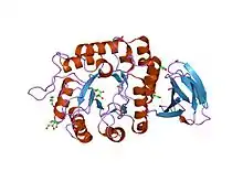 Glycoside hydrolases EC 3.2.1. are a widespread group of enzymes that hydrolyse the glycosidic bond between two or more carbohydrates, or between a carbohydrate and a non-carbohydrate moiety. A classification system for glycoside hydrolases, based on sequence similarity, has led to the definition of >100 different families.[1][2][3] This classification is available on the CAZy web site,[4][5] and also discussed at CAZypedia, an online encyclopedia of carbohydrate active enzymes.[6][7]