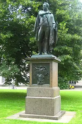 The Gneisenau Memorial on Bebelplatz green space in Berlin's Mitte district commemorates the Prussian field marshal and freedom fighter August Neidhardt von Gneisenau (1760–1831). Created from 1840 to 1855 by Christian Daniel Rauch in neoclassical style, it is a piece of the Berlin school of sculpture.[1][2] Until 1950 the bronze statue stood at the front of Unter den Linden avenue, with which it formed an urban ensemble, and since 1963 it has stood at the back of Bebelplatz green space.