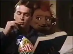 Initially conceived for a one-off advertisement[1] by John Finkelson of Sydney's George Patterson Advertising agency, the Gobbledok was designed and created by special effects worker Warren Beaton, who later worked for Wētā Workshop. The character's unexpected success led to numerous further appearances between 1987 and 1996. It continues to make occasional appearances in commercials and on packaging, and was used in an advertisement in 2021 to commemorate The Smith's Snackfood Company's 90th anniversary in Australia.[1] The Gobbledok was voiced by Dave Gibson, who was also known for voice-work on the TV series Australia's Funniest Home Videos. Gibson reprised his role as the character's voice for the 2021 advertisement.[1]