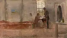 In April 1890, Arthur and Emma Minnie Boyd of the Boyd artistic dynasty took Golden Summer, Eaglemont to London, where, the following year as Golden Summer, Australia, it hung on the line at the Royal Academy, and in so doing became the first painting by an Australian-born artist to be exhibited there. In 1892, it appeared at the Paris Salon, initially receiving an honorable mention, and then a gold medal during a second appearance.[5] One critic noted the popularity of Golden Summer with "the crowds that throng the Salon", saying that it was "simply impossible" to pass by the painting "as it is utterly different from any other picture in the vast collection".[9] Likewise, Australian artist John Longstaff, then based in Paris, said the painting "created quite a sensation and stood out in oneness and quality all through everything else on the walls."[7]