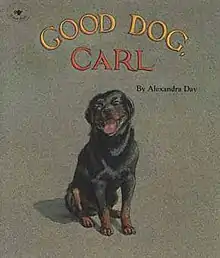 Good Dog, Carl is the eponymous name of the first of a series of children's picture books written and illustrated by Alexandra Day centering on a Rottweiler named Carl and a little girl named Madeleine, of whom he takes care.[1][2][3][4][5] All of the books are mostly wordless, relying on the details of the illustrations to tell the stories. Good Dog, Carl was published in 1985 and has been continually in print since that date. There have been fourteen "Carl" titles after the first. All but the first have been published by Farrar, Straus and Giroux. The board book versions of these stories are particularly popular. In addition to the children and Rottweiler fanciers who have enjoyed them, the books have been found useful in teaching English as a second language, with Alzheimer's patients, and with children who are having difficulty learning to read.