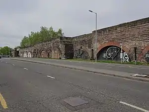 The station opened on 1 September 1877[1] as a partial replacement for Southside station, the previous terminus of the Barrhead branch line which was to be extended to the new St Enoch station which had opened nearly a year earlier. Gorbals station closed to passengers permanently on 1 June 1928.[1] The line through the station remained open and in constant use until St Enoch closed to passenger traffic on 27 June 1966. Freight traffic continued until 1973, when the section from Langside Junction was closed and dismantled.