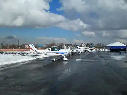Gorelovo (Russian: Горелово) is a former military aerodrome. It's located 23 kilometers (14 mi) southwest of Saint Petersburg city center, and 10 kilometers (6.2 mi) west of Pulkovo Airport. Right now it is a developing place for general aviation and a take-off site for the "419th helicopter repair plant", which is located at the eastern part of the runway. Internal Russian index code for this airfield is XLLE.