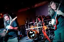 The band's early music, particularly their debut album Considered Dead in 1991, is characterised by a relatively straightforward death metal sound, with conventional instrumentation and song structures. Lemay credits Swedish death metal band Entombed as a major influence on this album.[25] However, on their second album The Erosion of Sanity in 1993, the band began to experiment more, incorporating pianos and acoustic guitars into their sound. The band took a break after this album but reformed with a new lineup and released Obscura in 1998. Obscura represented a significant shift in the band's style of music, often attributed to then-guitarist Steeve Hurdle. The album made increasing use of complex song structures, unorthodox sounds, dissonant guitarwork, unconventional time signatures, and esoteric lyrical themes.[6][26][27] "Even by today's standards Obscura is considered to be one of the most complex and technical records in the genre, due to its unprecedented dissonance and experimentation brought by the band's late guitarist Steeve Hurdle."[27] The following album, 2001's From Wisdom to Hate, represents a balance between Obscura and the previous album The Erosion of Sanity. The complexity and unpredictability of the song structures were scaled back, while still incorporating technically complex compositions, leading to a slightly more streamlined sound.[7] The band's next album, 2013's Colored Sands, represents a significant evolution in this style of metal, with critics noting that the "huge wall of dissonant lead work and dizzying rhythm riffs have been crafted into something far more atmospheric, but with the heaviness and weight only Gorguts could take to this level, making Colored Sands not only near-immaculately put together, but perhaps one of the most absorbing albums of their genre."[28]