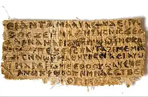 Leo Depuydt of Brown University found it ridiculous that in the Gospel of Jesus' Wife, the word 'my' in the phrase "my wife" is written in bold, as if to stress the idea that Jesus was married. Depuydt also said that he had never seen bold writing used in a single Coptic text before. He wrote: "The effect is something like: 'My wife. Get it? MY wife. You heard that right.' The papyrus fragment seems ripe for a Monty Python sketch... . If the forger had used italics in addition, one might be in danger of losing one's composure."[42] Christian Askeland's linguistic analysis of the text shows that it is in a dialect which fell out of use well before AD 741. He concluded that the text must have been written on a fragment of medieval papyrus by a modern forger.[16] Dr. Askeland also found it suspicious that the author of the fragment wrote the same letter in different ways.[39] In addition, Askeland showed that the fragment is "a match for a papyrus fragment that is clearly a forgery." This second fragment, containing part of the Gospel of John, belongs to the same anonymous owner, and is now overwhelmingly considered a fake. This is because each line on the fragment of the Gospel of John appeared to have been copied from every second line of an online translation of the gospel in an ancient Coptic dialect called Lycopolitan, necessitating an improbable scenario whereby the text, if it were genuine, had been coincidentally written on papyrus exactly twice as wide as the online translation, as well as every word (indeed, every letter) being precisely the same size as those written in the online translation. In addition, the Lycopolitan language died out prior to the sixth century, and the John fragment was carbon-dated to somewhere between the seventh and ninth centuries. Askeland argues that the John fragment was written by the same person, in the same ink, and with the same instrument as the Gospel of Jesus' Wife.[16][40] Professor King felt that these concerns were legitimate, but that there was still a chance that the gospel was authentic.[39] The Atlantic reported that despite King's reservations, the text was widely considered a fake.[7] King later conceded, saying that evidence suggests that the Gospel of Jesus' Wife is a forgery.[1]