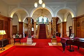 Many of the rooms are set aside for official state occasions—for example, two dining rooms, a ballroom, a conservatory and drawing rooms.[6] Government House is where the governor-general confers with the leader of the New Zealand Government, hosts foreign dignitaries, and performs the functions of New Zealand's head of state, as the representative of the monarch of New Zealand. The residence is also open to the public, running free tours of the state rooms throughout the year.[7]