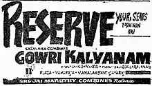 Gowri Kalyanam (transl.The Marriage of Gowri) is a 1966 Indian Tamil-language film, directed by K. Shankar and produced by G. V. Saravanan. The film stars Jaishankar, Jayalalitha, Ravichandran, Sheela and Nagesh. It was released on 11 November 1966.[2]