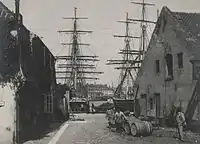 Grønlandske Handels Plads is part of the area that Andreas Bjørn reclaimed in the 1730s for his shipyard which became known as Bjørnholm ("Bjørn's Isle"). In 1747, Bjørn sold the northern part of the site to Det almindelige Handelsselskab ("The General Trading Company") which in 1750 obtained a monopoly on trade on Greenland. From 1763 the company was also responsible for trade on Iceland, Finmarken and the Faroe Islands. Master builder Johan Christian Conradi was commissioned to build a large warehouse for the company which was completed in 1767. Conradi had led the construction of the Eigtved Warehouse for the Danish Asia Company at Asiatisk Plads in 1750 and later also been involved in the construction of several other large warehouses in Christianshavn either as a builder or architect. The new warehouse was initially known as the Icelandic Warehouse and later as the Greenlandic Warehouse.[1]