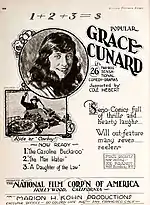 Born in 1893, Harriet Jeffries was the elder of two daughters of Ohio natives Washington and Lola (née Longshore) Jeffries.[2][lower-alpha 2] The federal census of 1900 documents that seven-year-old Harriet, her younger sister Armina (Mina), and their parents were still residing that year in Columbus, where Washington supported the family by working as a grocery clerk.[2] Harriet completed her formal education in Columbus, leaving school after the eighth grade, presumably to devote full time to an acting career.[lower-alpha 3] When and where she was introduced to performing in theatre remains uncertain; but by 1906, at the age of 13, the future film star was already acting in local stage productions such as Dora Thorne, East Lynne, and then in New York in Princess of Patches.[3] Much later, in 1916, the circumstances of Grace Cunard's (Harriet Jeffries') entry into acting are briefly discussed in "Before the Stars Shone", an article in the New York-based trade monthly Picture Play Magazine.[4] That article by staff writer Al Ray informs his readers, "Grace Cunard...when very young, begged for a stage life until her mother took her to a manager who gave her the title part in 'Dora Thorne.'" Her other early stage performances included traveling with stock companies to theatres in Cleveland and St. Louis and appearing in vaudeville in various cities.[5][6]