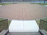 Grace Commons is a labyrinth. It was designed with eleven circuits and modeled after the one integrated into the stone floor of Chartres Cathedral in Chartres, France circa 1201. The turns in the circuits are placed into four quadrants with a six-petal rosette in the center. Grace Commons is open to the public, not just members of Grace Episcopal Church. It is located at the corner of Seventh and Liberty Streets facing the main parish building. There are two entrances into the labyrinth, one with steps descending from a parking lot on Sixth Street and another that is wheelchair-accessible from Seventh Street.[4]