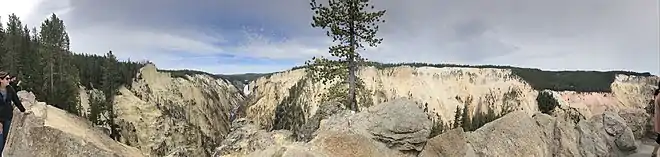 The Grand Canyon of the Yellowstone is the first large canyon on the Yellowstone River downstream from Yellowstone Falls in Yellowstone National Park in Wyoming. The canyon is approximately 24 miles (39 km) long, between 800 and 1,200 ft (240 and 370 m) deep and from 0.25 to 0.75 mi (0.40 to 1.21 km) wide.[1]
