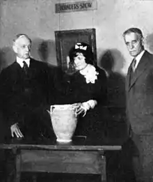 Artist Malvina Hoffman; Stanley Field, director and the nephew of the founder of the Field Museum of Natural History in Chicago; and actress Mary Pickford; at the 1934 opening of Hoffman's Grand Central Art Galleries exhibition "The Races of Man."