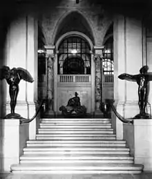 Having worked tirelessly to promote American art at home the 1920s, in 1930 Walter Leighton Clark and the Grand Central Art Galleries spearheaded the creation of the U.S. Pavilion at the Venice Biennale.[57] Up until then there was no place at the Biennale dedicated to American art, and Clark felt that it was crucial to establishing the credentials of the nation's artists abroad.[58] The pavilion's architects were William Adams Delano, who also designed the Grand Central Art Galleries, and Chester Holmes Aldrich. The purchase of the land, design, and construction was paid for by the Galleries and personally supervised by Clark. As he wrote in the 1934 catalog: