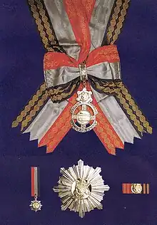 ![]() Grand Order of King Dmitar Zvonimir (top: Grand Order medal with sash; bottom: Morning Star (Danica) medal; left: smaller decorative version; right: Grand Order ribbon) | |