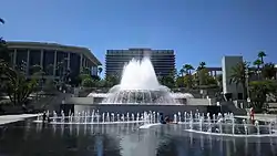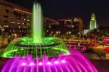 Gloria Molina Grand Park, commonly known as Grand Park, is a 12-acre (4.9 ha) park located in the civic center of Los Angeles, California. First developed in 1966 as the 'Civic Center Mall' with plazas, fountains and a Court of Flags,[2][3] it is now a part of the larger redevelopment known as the Grand Avenue Project, with its first phase having opened in July 2012.[4] Grand Park is part of a joint venture by the city of Los Angeles and Los Angeles County. It was designed and built by the Los-Angeles–based multidisciplinary design firm Rios Clementi Hale Studios.[5] Park programming and entertainment, security and upkeep are maintained by the nearby Los Angeles Music Center.[5]