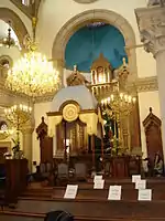Above the entrance, on the second floor, the organ in wood is damaged and requires extensive restoration. It is the former organ of the Basilica of Saint-Martin d'Ainay, sold in 1864 to the synagogue during its construction.[8]
