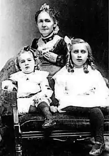 Five of the ten children born to them survived infancy. Although she loved living in the Shenandoah Valley, in 1905 Anna and Thomas moved to a farm in Eagle Bridge, New York at her husband's urging. When Thomas Moses was about 67 years of age in 1927, he died of a heart attack, after which Anna's son Forrest helped her operate the farm. She never married again. She retired and moved to a daughter's home in 1936.[1][2][9] She was known as either "Mother Moses" or "Grandma Moses", and although she first exhibited as "Mrs. Moses", the press dubbed her "Grandma Moses", and the nickname stuck.[10]