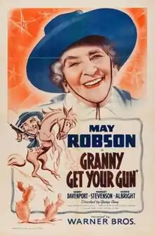 Granny Get Your Gun is a 1940 American comedy western film directed by George Amy and written by Kenneth Gamet. The film stars May Robson, Harry Davenport, Margot Stevenson, Hardie Albright, Clem Bevans and Clay Clement. It is based primarily on supporting characters found in the 1937 Perry Mason novel The Case of the Dangerous Dowager. The film was released by Warner Bros. on February 10, 1940.[2][3]