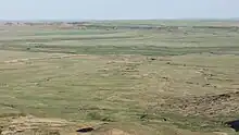 The East Block of the park is located about an hour's drive south of Assiniboia on the south side of the Wood Mountain Hills in Census Division No. 3. The interpretive centre is in the McGowan House at the new Rock Creek Campground and the information centre is at the museum in Wood Mountain Regional Park.[11] The East Block is more of a wilderness area but has views of the badlands of Rock Creek, the Cretaceous–Paleogene boundary, and prairie skies. A one-lane, 11-kilometre (6.8 mi) parkway traverses the Rock Creek Badlands.[12] The East Block contains the Grasslands National Park (east) (SK 023) Important Bird Area.[13]