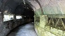 At the end of Platform 2 is the entrance to the Worm, an enclosed passageway which leads under Avenue Road into the former Imperial Hotel (now Malvern St James). It formed a private pedestrian access and is believed to be the only structure of its kind in the country.[7] Although in need of extensive restoration and generally not open to the public, the Worm is itself Grade II listed.[8]