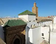 The Great Mosque of Salé (Arabic: المسجد الأعظم, Masjid Al Aadam) is a mosque in Salé, Morocco. Covering an area of 5,070 m2 (54,600 sq ft), it is the third-largest mosque in Morocco, and was originally built between 1028 and 1029.[1] It has been destroyed and rebuilt several times since the original construction. It was built in Almoravid and Almohad architectural styles, and the mosque features nine gates.[2] It was severely damaged in the Bombardment of Salé of 1851, and was briefly closed during the French protectorate in Morocco.