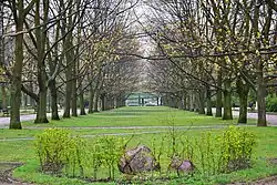 Originally in the park were planted Simon's poplar trees, which were replaced in the 1970s with northern red oaks.[1]