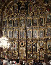 The church was built between 1785 and 1806 in Zopf style. Its furniture is also in Zopf style, from the late 18th century. It is a listed historic monument. The church houses an iconostasis 16 m high, with 88 pictures of the life of Jesus. The Baroque iconostasis was carved in the workshop of Miklós Jankovits of Eger, the pictures (with the exception of four of them) were painted by Anton Kuchelmeister of Vienna. The copy of the Akhtyrka Icon of the Mother of God was a gift from Empress Catherine II of Russia.