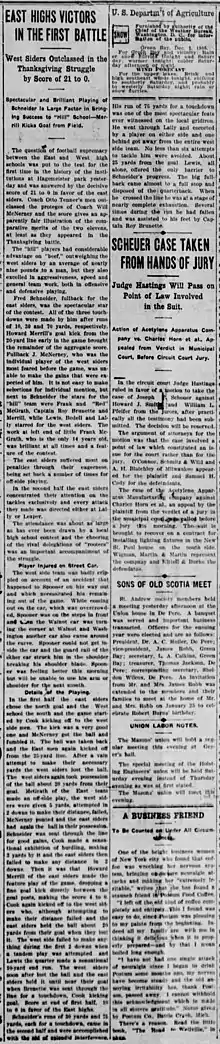 The December 1, 1905, Press-Gazette's report of the first East–West game
