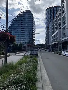 Zetland Avenue west is a new tree-lined boulevard inspired by avenues in Manhattan with a long row of aligned traffic lights.[10]