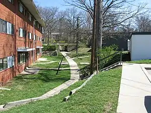 Landscaping was integrated into the design, with mature specimen trees saved or transplanted during site development. Each of the group housing units had a plot 30 feet (9.1 m) by 90 feet (27 m) between the house and the parklands, cared for by the tenant. On the service side space was provided for trash storage and clothes drying. Landscaping was used to create privacy, and the finished community was notable for the maturity of the plantings.[5]