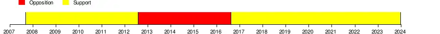 In early February 2014 ZS had decided to join Boris Tadić's New Democratic Party under formation, so henceforth they will be considered a single organisation under the name "New Democratic Party-Greens".[3] Subsequently, ZS passed a new Statute on 10 February 2014 and officially changed its name to New Democratic Party–Greens'. The New Democratic Party seceded from this union after the election, and on 14 June 2014 the name of the party was changed back to "Greens of Serbia".[4][5]
