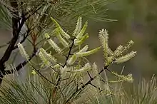 Grevillea erythroclada, commonly called needle-leaf grevillea,[3] is a species of flowering plant in the family Proteaceae and is endemic to northern Australia. It is a shrub or small tree with divided leaves, the ultimate lobes linear to more or less cylindrical, and clusters of cream-coloured to pale yellow flowers.